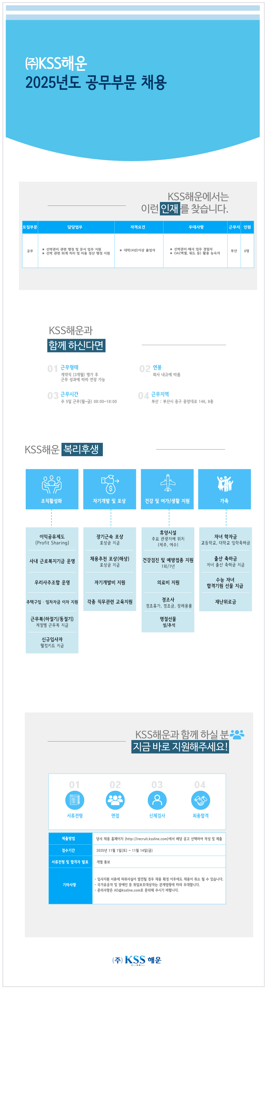 1969년 사업을 시작하며 함께한 KSS의 창업정신은 KSS의 근간이 되어 반세기 동안 소중히 발전시켜오며 지속된 성장을 이끈 KSS의 확실한 철학입니다. 모든 임직원의 마음속에 깊이 자리잡은 KSS의 정신을 바탕으로 계속해서 모두가 꿈꾸는 행복한 미래를 위해 달려가겠습니다.