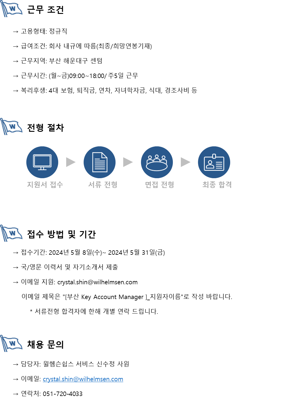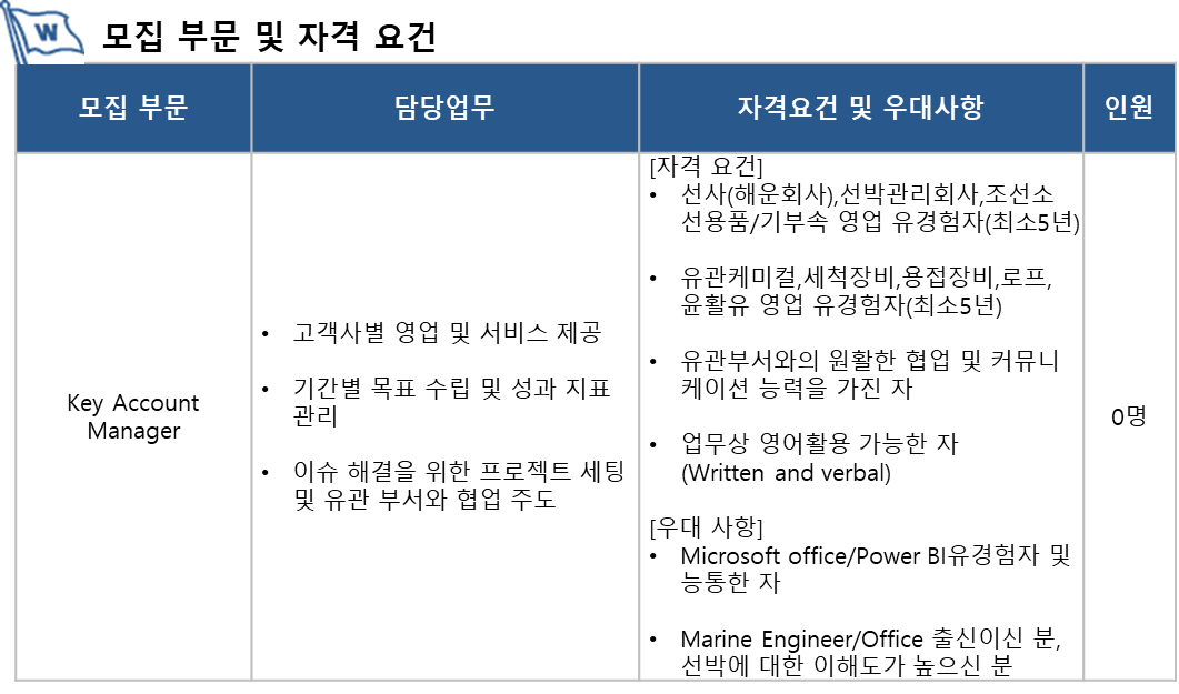[윌헴슨쉽스서비스] Key Account Manager 모집 공고