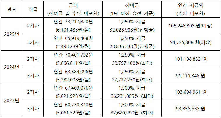 1) 급여 : 2기사 6,101,485원/월(유급휴가비 및 퇴직금 포함, 상여금 및 수당 미포함)
